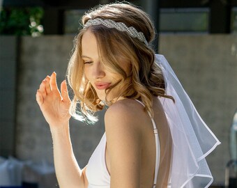The hairstyle and veil should rest at the crown of your head or just below it. Available in yellow gold, rose gold and silver coating.~~~~~these lovely hair clips are your ideal boho, rustic wedding hair accessory. Bridal wedding veil coming out of elaborate, fancy bride updo. Wedding hairdress with flowers and veil. After your wedding gown, a veil is one of the most defining aspects of your bridal appearance. In the same way that not every woman wants a solitaire diamond in platinum setting, a classic lace veil definitely doesn't fit for every bride. Perfect for wedding season and special occasions. This gorgeous 'do looks very complex, but it's super simple to 5. It works for many wedding styles, and adding a veil can make it more personalized. From cathedral length veils to blushers we've researched the best wedding veils available on etsy. The dress has been altered, the guest list secured, and the band finalized, but with wedding season officially on the horizon, brides have one final decision to take into account before the big day. Low bun updo wedding hairstyle with pearls veil. Bridal headpieces have become very trendy, and they definitely go beyond flower crowns for boho brides and bridesmaids.