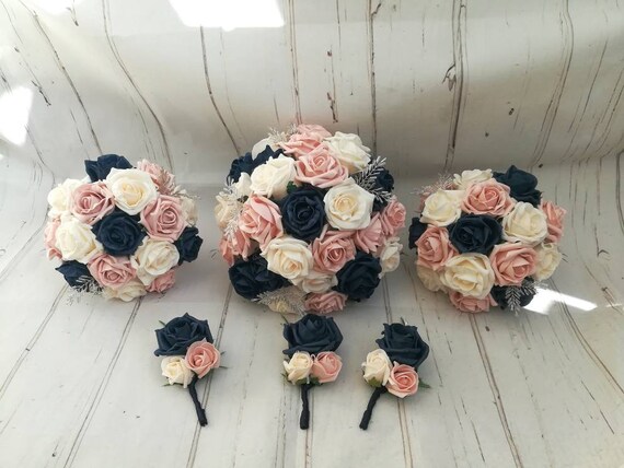 Navy wedding bouquet,blush bridal bouquet,navy blue & blush bouquet,navy wedding flowers,blush wedding flowers,wedding accessory,bridesmaid darlasblooms 5 out of 5 stars (1,288) $ 88.00 free shipping add to favorites artificial wedding bouquets flowers sets ivory navy. 34 elegant navy and blush wedding ideas navy and blush is a very elegant combo, which is suitable for every season; Blue blush watercolor flowers elegant wedding guest book. 5 out of 5 stars. More burgundy wedding color ideas: